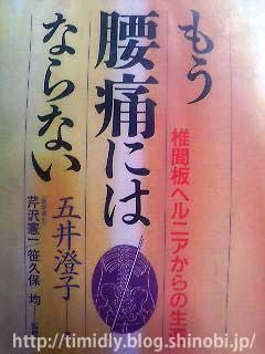 『もう腰痛にはならない―椎間板ヘルニアからの生還』と言うタイトルに惹かれて借りて読んだ。1996年出版の些か古い本だが、今や患者目線でのブログやサイトは多いが、書籍は意外と見当たらないので興味を持ったのだ。