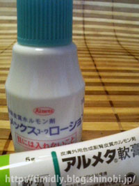 アルメタ軟膏は頭皮でなく、主に顔用に処方してもらっている。上のリドメックスがローションタイプなのに対して、こちらは透明な軟膏タイプ。リドメックスと似た薬効だが、こちらの方が弱い。一度アルメタ軟膏が無くなった時、リドメックスを顔にちょっと塗ったが皮膚が少し爛れたような感じになった。医師に相談すると、やはり顔用だった。